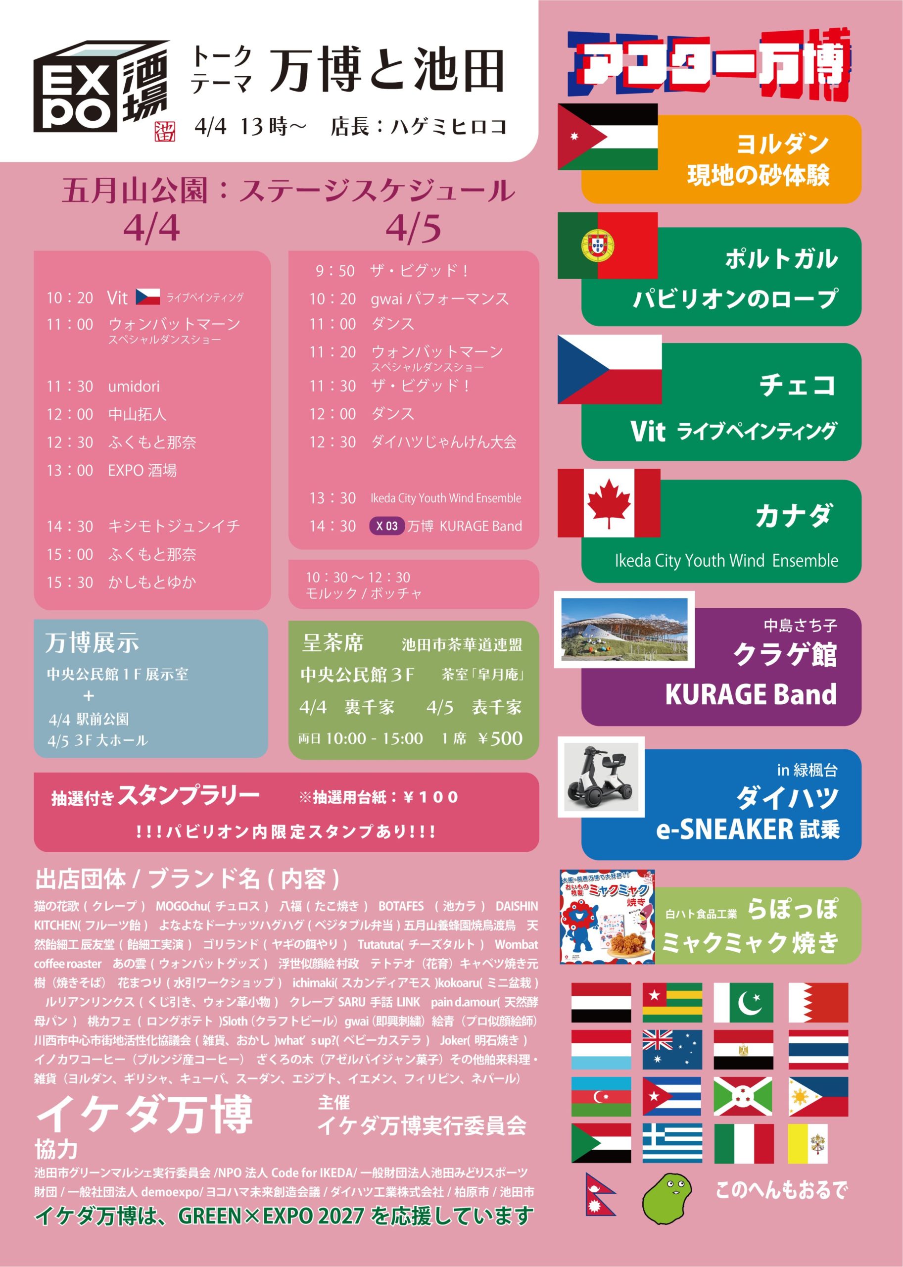 2026年4月3日 kj 2026年4月4日(土) 『イケダ万博』 2026年4月4日(土)『イケダ万博』 2026年4月4日(土) 『イケダ万博』 会場:五月山公園 住所: 池田市綾羽2丁目5-33 (駅より徒歩10分) 料金:無料 出演:キシモトジュンイチ/ 他 キシモトジュンイチは14:30~出演