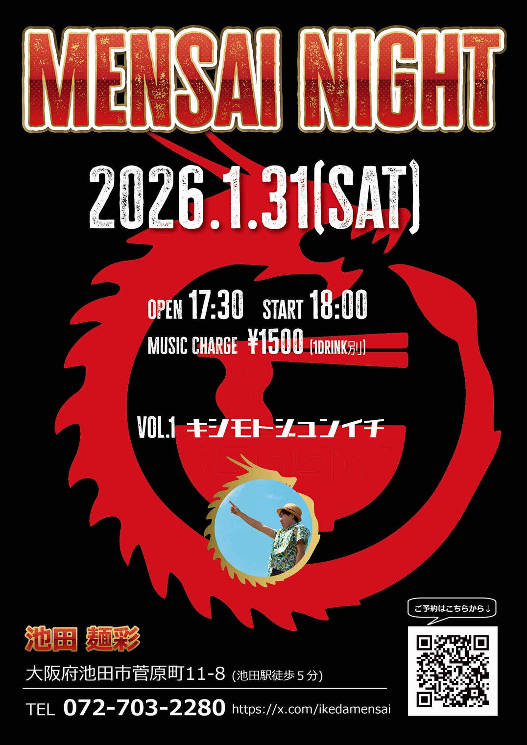 2026年1月31日(土)  池田麺彩「Mensai Night」